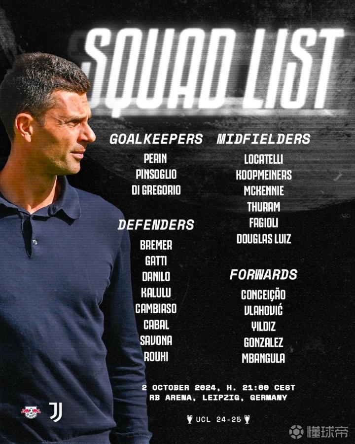 欧冠联赛第2轮即将打响,尤文图斯备战充分。在北京时间10月3日凌晨3点,他们将迎来与RB莱比锡的较量。在公布的大名单中,弗拉霍维奇、姆班古拉、伊尔迪兹被列入锋线人选,而阿图尔意外落选。